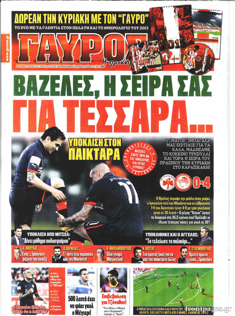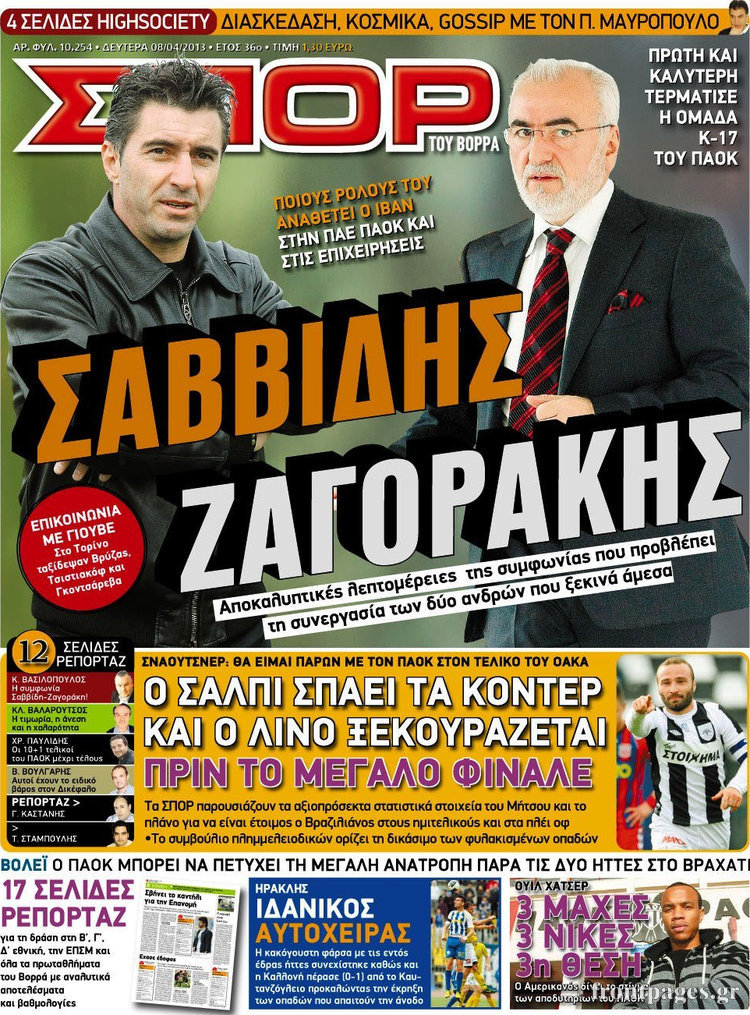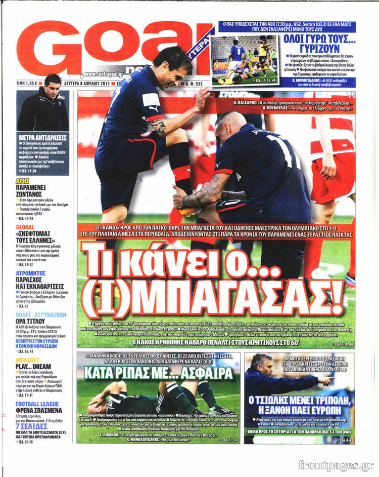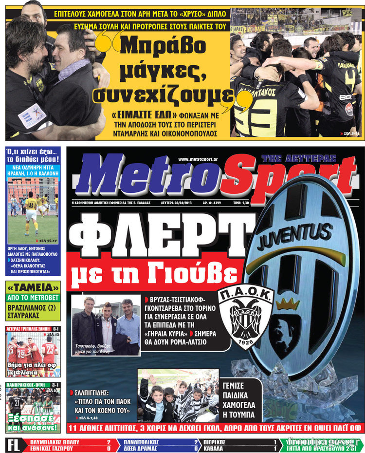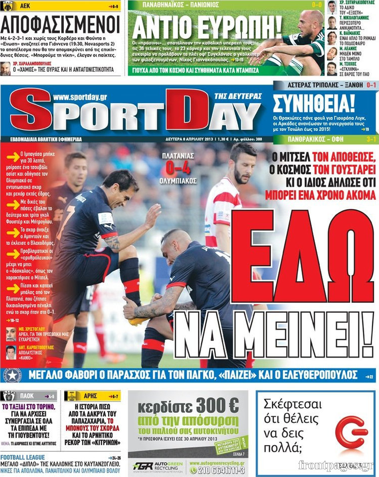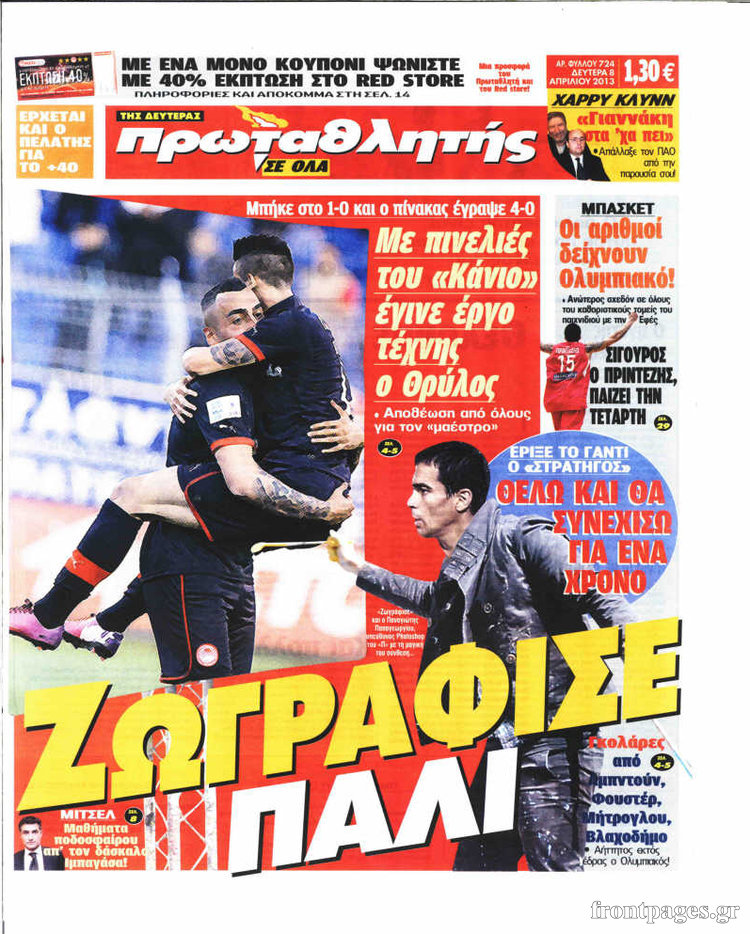 Πρωτοσέλιδα αθλητικών εφημερίδων 08/04/2013